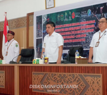 DISKOMINFOSTANDI — Wakil Bupati Mahakam Ulu, Suhuk, S.E., mewakili Bupati Angela Idang Belawan, menghadiri kegiatan Mecak Undat Lepek Majau yang digelar di Balai Adat Kampung Datah Bilang Ilir, Kamis (16/04/2026).